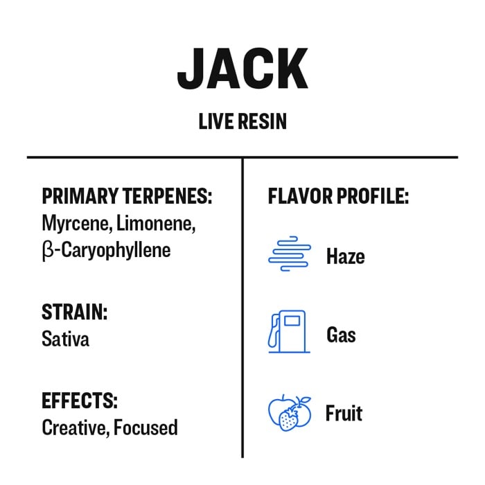 This batch of Live Resin Jack is extracted from hand-selected ultra premium hemp harvested at the peak moment of aromatic expression. Some slight variation from harvest to harvest is typical of a natural product. Keep refrigerated for optimal freshness.